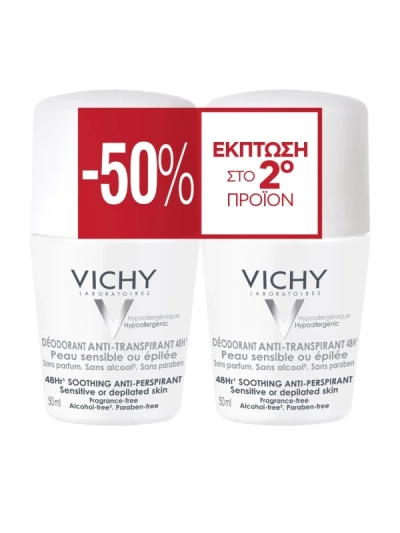 Vichy Promo Deodorant 48ώρες Roll-On Ευαίσθ/Αποτριχωμένες 50ml, Το 2ο στη Μισή Τιμή
