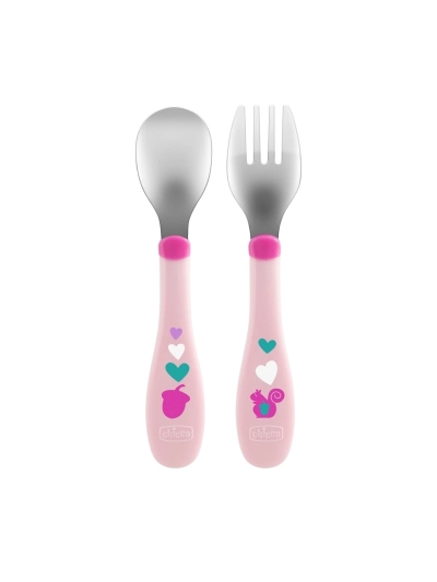 Chicco Metal Cutlery Σετ Πιρούνι-Κουτάλι Ροζ 18m+ 2τμχ