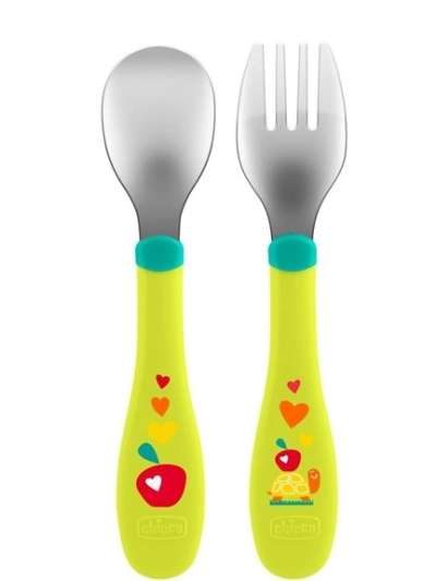 Chicco Σετ Κουτάλι-Πιρούνι 2 τμχ Για 18+ Μηνών Πράσινο