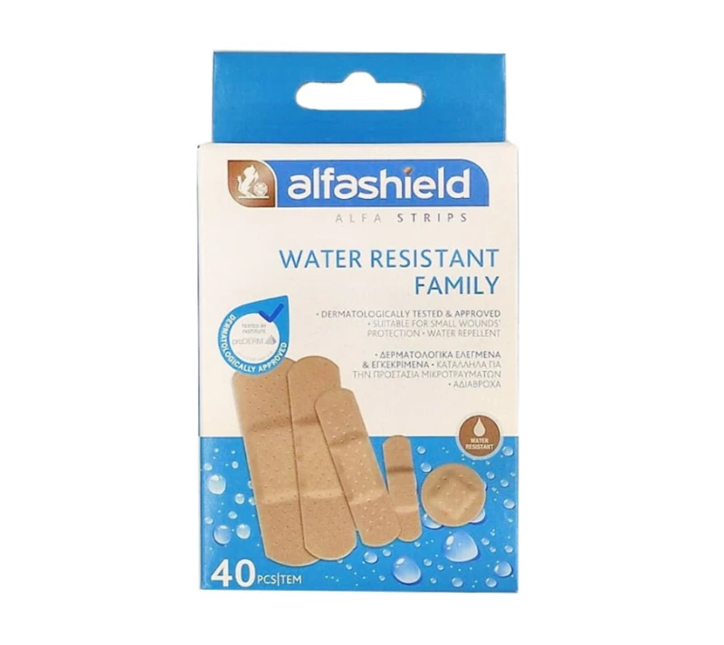 Alfashield Strips Water Resistant Family Αδιάβροχα Αυτοκόλλητα Επιθέματα για όλη την Οικογένεια 5 Μεγέθη 40Τμχ.