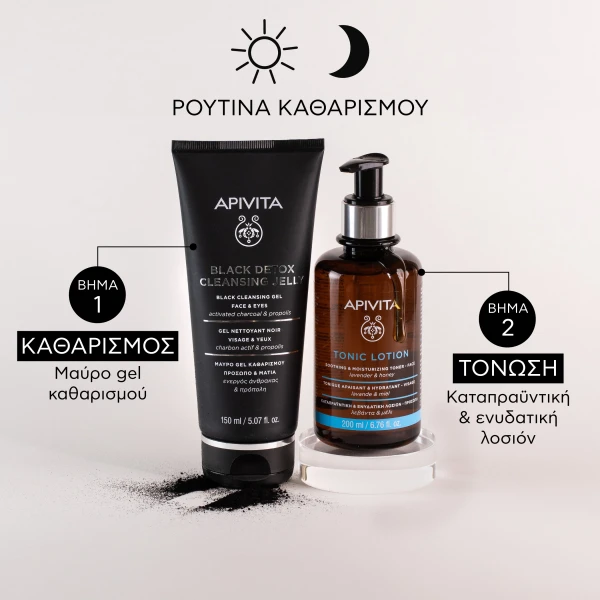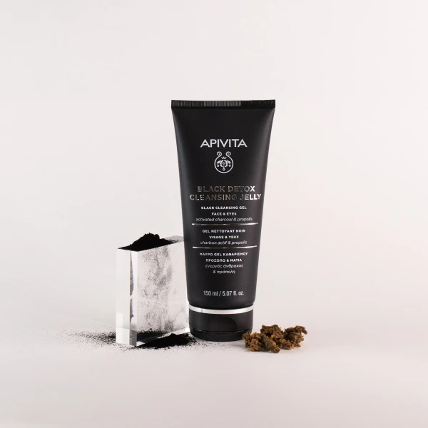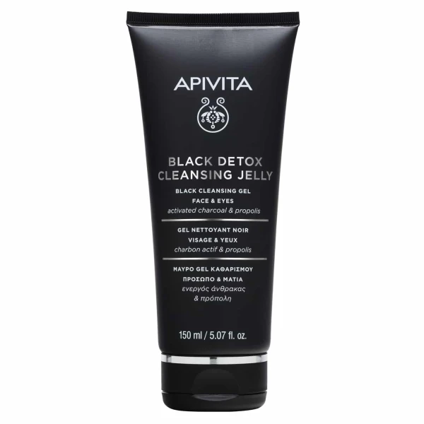 Apivita Black Detox Cleansing Jelly, Μαύρο Gel Καθαρισμού Πρόσωπο & Μάτια με Πρόπολη & Ενεργός Άνθρακα 150ml