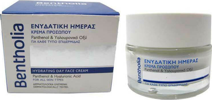 Ενυδατική κρέμα ημέρας της εταιρίας Bentholia με υαλουρονικό οξύ, πανθενόλη και βιταμίνη Ε.