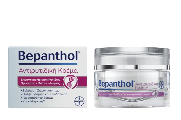 Η Bepanthol Αντιρυτιδική Κρέμα έχει ελεγχθεί κλινικά σε γυναίκες με ευαίσθητο, κανονικό, ξηρό και λιπαρό δέρμα, ηλικίας 40-55 ετών, μπορεί όμως να χρησιμοποιηθεί και από γυναίκες μικρότερης ή μεγαλύτερης ηλικίας που αναζητούν ένα καλλυντικό προϊόν με αποδεδειγμένη αντιγηραντική δράση. Συνιστάται από Δερματολόγους για μείωση ρυτίδων.