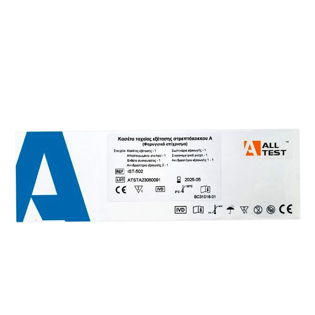 Το All Test Strep A είναι ένα τεστ ταχείας εξέτασης για την ποιοτική ανίχνευση αντιγόνων στρεπτόκοκκου Α σε δείγματα φαρυγγικού επιχρίσματος, παρέχοντας αποτελέσματα εντός 5 λεπτών.