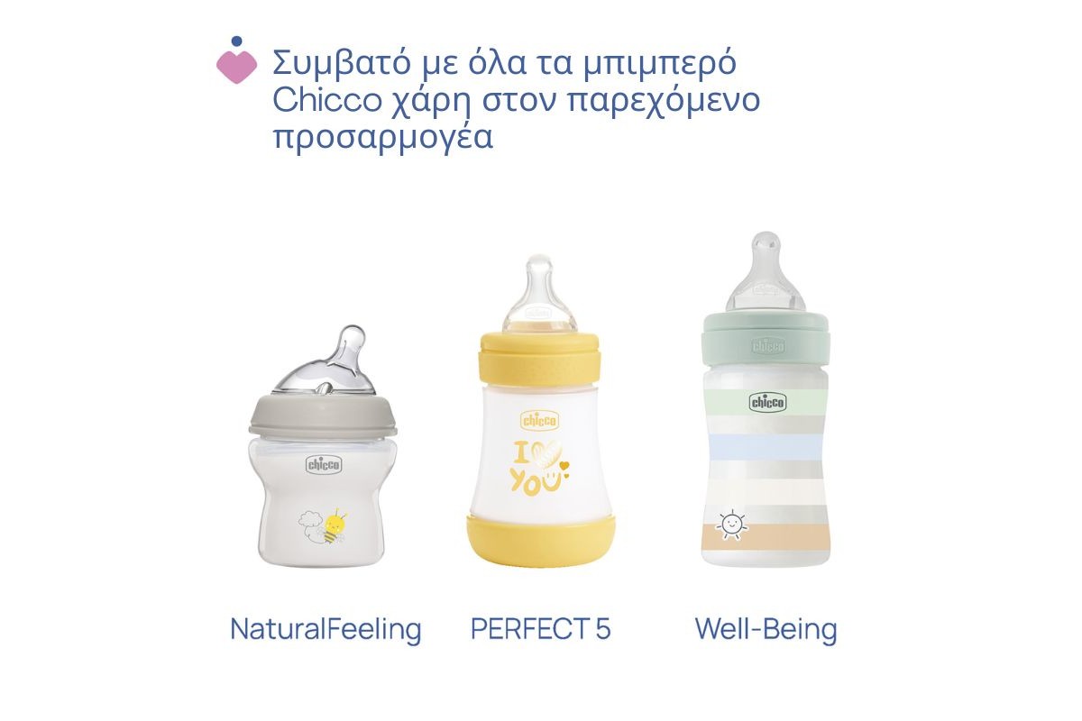 Το Chicco Stimolatte είναι συμβατό με τα μπιμπερό NaturalFeeling, Well-Being και Perfect5. Περιλαμβάνει καπάκι για αποθήκευση γάλακτος και φυσική θηλή NaturalFeeling. Ιδανικό για χρήση στο σπίτι ή εκτός, με επαναφορτιζόμενη μπαταρία και περιλαμβανόμενη μπαταρία λιθίου (3.7V/Li-IonPolim).