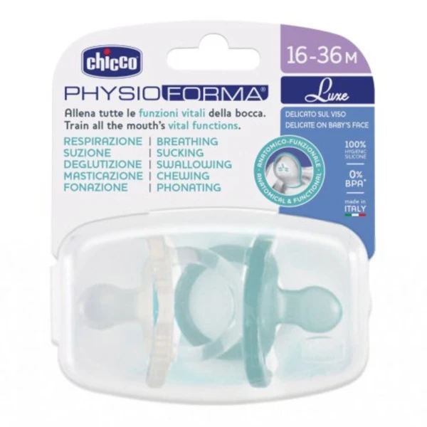 Chicco Physio Forma Luxe Πιπίλα Όλο Σιλικόνη Μπλε/Διάφανη 16-36m 2τμχ