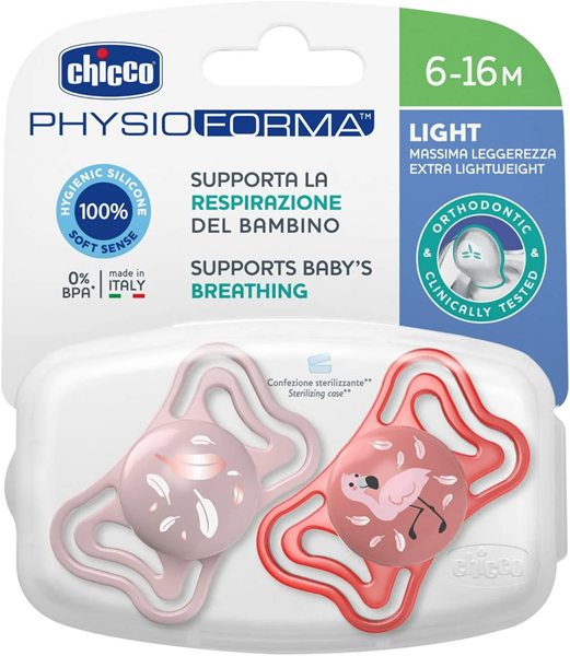 Chicco Physioforma Light Πιπίλα Σιλικόνης Ροζ 6-16m+ 2 Τεμάχια