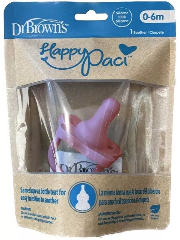 Dr. Brown’s Happy Paci Πιπίλα Σιλικόνης για 0+ μηνών, 1τμχ ροζ