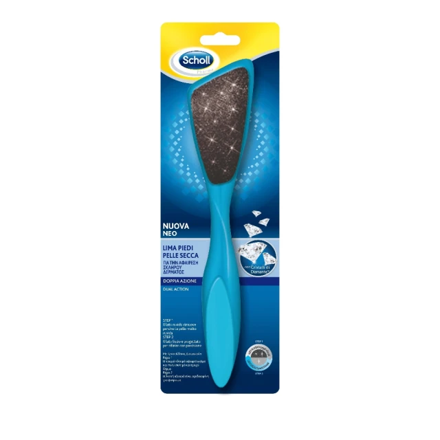 • Με δύο πλευρές: Η τραχεία επιφάνεια αφαιρεί εύκολα και με ασφάλεια το σκληρό δέρμα. Η πιο λεία επιφάνεια λειαίνει το τραχύ και ξηρό δέρμα, αφήνοντας την επιδερμίδα λεία και απαλή.