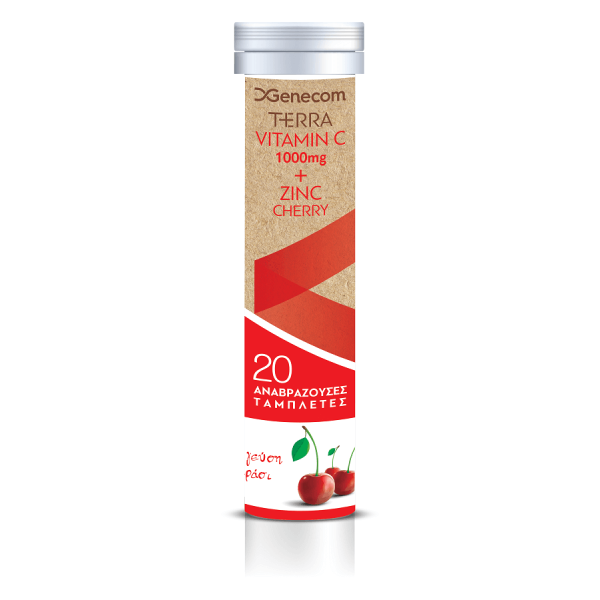 Genecom Terra Vitamin C 1000mg + Zinc, με Γεύση Κεράσι, 20 αναβράζοντα δισκία