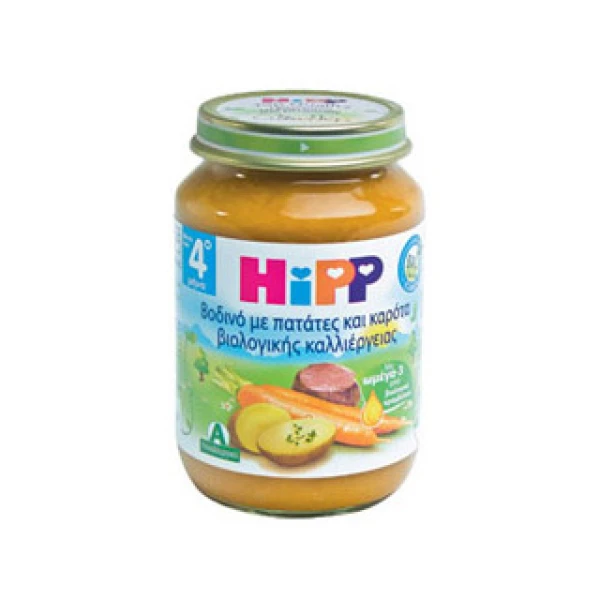 Hipp Βοδινό με πατάτες και καρότα βιολογικής καλλιέργιας 4 μηνών+ 190gr