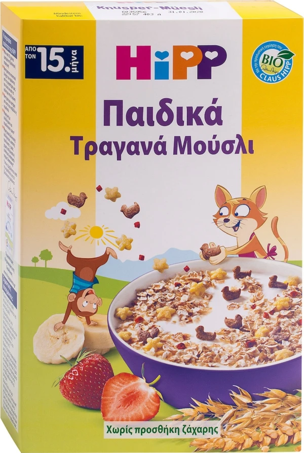 HIPP Παιδικά Τραγανά Μούσλι με Φράουλα από τον 15ο Μήνα