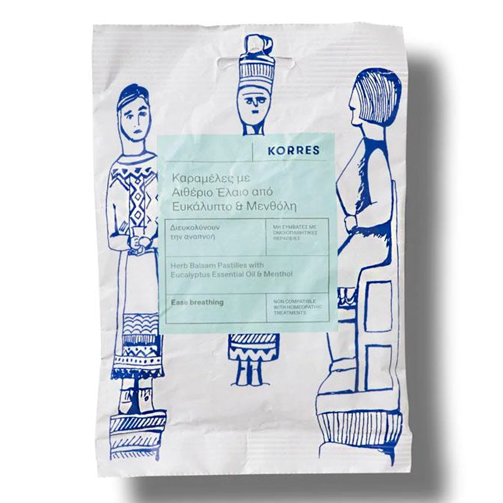 KORRES Καραμέλες με Αιθέριο Έλαιο από Ευκάλυπτο & Μενθόλη, Καραμέλες με βότανα της Ελληνικής φύσης που ανακουφίζουν άμεσα τον ερεθισένο λαιμό.