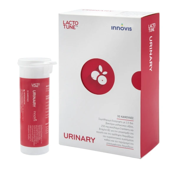 To LACTOTUNE™ Urinary της Innovis Pharma, είναι ένα εξειδικευμένο συμπλήρωμα διατροφής που συνδυάζει 3 διαφορετικά στελέχη προβιοτικών καλλιεργειών (2,5 δισεκατομμύρια),  Βιταμίνη Β2 και τις ιδιότητες του πατενταρισμένου εκχυλίσματος Cranberry Cran-Max®, για την υποστήριξη της αγωγής των λοιμώξεων του ουροποιητικού συστήματος και την πρόληψη εμφάνισής τους(4).