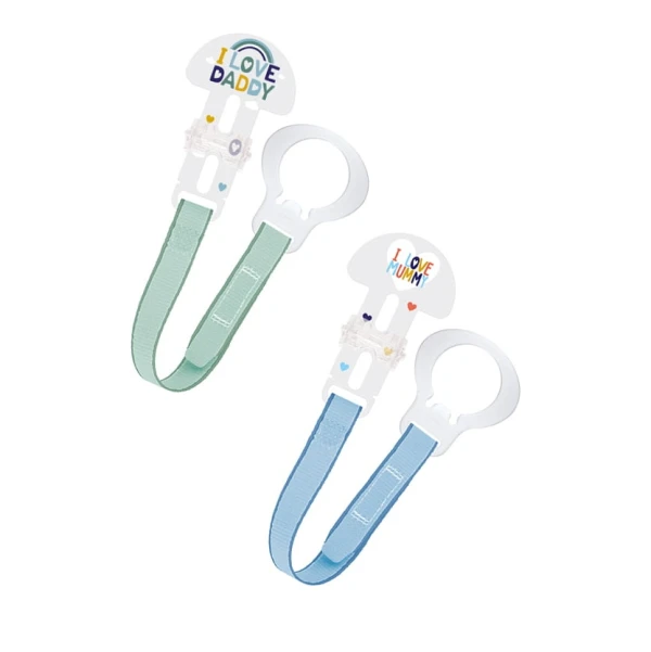Mam Κορδέλα Πιπίλας ‘I Love Mummy & Daddy’ Γαλάζιο/Βεραμάν 2 τεμάχια