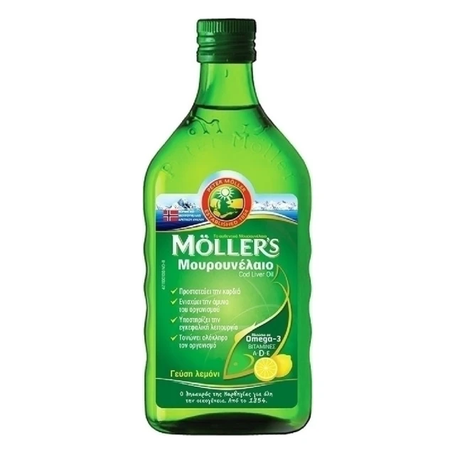 Möller’s Μουρουνέλαιο υγρό από συκώτι Αρκτικής μουρούνας – Συμπληρώνει την καθημερινή διατροφή με ωμέγα-3 λιπαρά οξέα, βιταμίνες D3, A και E αποτελώντας τέλεια λύση για όλη την οικογένεια.