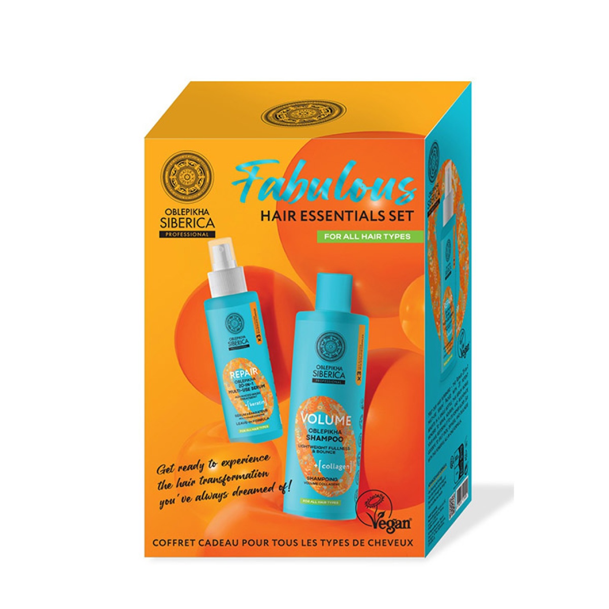 Natura Siberica Oblepikha – Σετ Ενυδάτωσης & Αναδόμησης Μαλλιών – Multi-Use Serum Αναδόμησης, 200ml & Σαμπουάν Ενίσχυσης Όγκου, 400ml