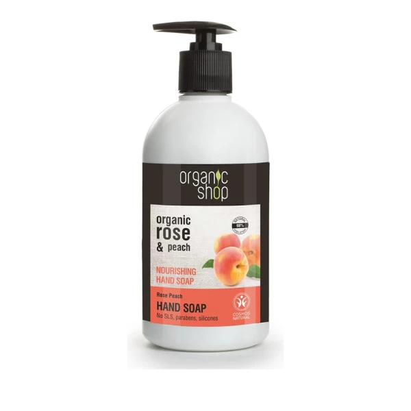 Organic Shop Hand Soap Rose Peach , σαπούνι θρέψης χεριών , Ροδάκινο και ρόδο.