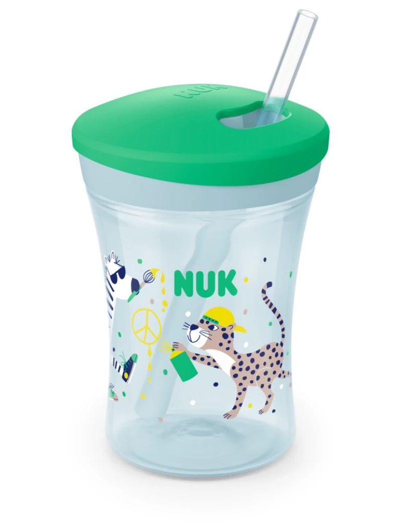 NUK Action Cup με καλαμάκι 12m+ 230ml Χρώμα Πράσινο, 1τμχ