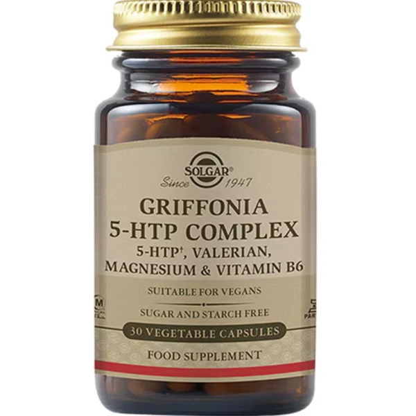 Τα 100 mg 5-HTP ανά κάψουλα που περιέχει το SOLGAR® GRIFFONIA 5-HTP COMPLEX μπορούν να ενισχύσουν τα επίπεδα σεροτονίνης, ενώ σε συνδυασμό με τη Βιταμίνη B6, συμβάλλουν στη μείωση της κόπωσης και της κούρασης. Ταυτόχρονα η φόρμουλα περιέχει βαλεριάνα, η οποία παραδοσιακά χρησιμοποιείται για τη διαχείριση του αισθήματος ανησυχίας και την εξασφάλιση ύπνου καλής ποιότητας. Το SOLGAR® GRIFFONIA 5-HTP COMPLEX είναι κατάλληλο για vegans, ενώ δεν περιέχει σόγια, γαλακτοκομικά και γλουτένη.
