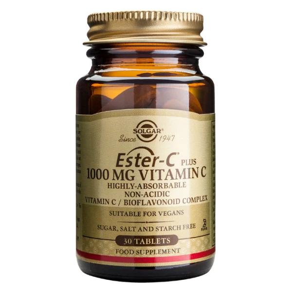 Παρέχει μια πιο ελαφριά και εύκολα αφομοιώσιμη μορφή της Βιταμίνης C, με ουδέτερο pH και μη όξινη. Οι μεταβολίτες της Ester-C® επιδρούν θετικά στα επίπεδα κατακράτησης της Βιταμίνη C στα κύτταρα του ανοσοποιητικού, προσφέροντας τη μέγιστη ενδυνάμωση του ανοσοποιητικού συστήματος. Η Ester-C® της SOLGAR® είναι μια αποτελεσματική φόρμουλα με πρόσθετα βιοφλαβονοειδή φυσικών φυτών, ισχυρά αντιοξειδωτικά που βρίσκονται από τη φύση με τη Βιταμίνη C σε φρούτα και λαχανικά.