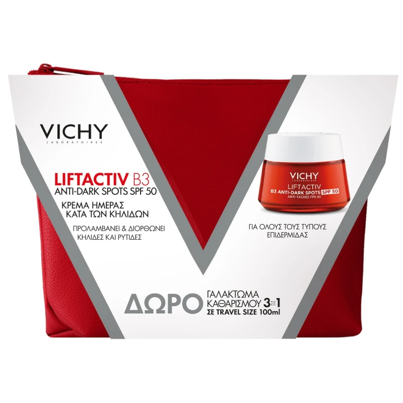 Vichy Promo Liftactiv B3 Anti Dark Spots SPF50 Κρέμα Ημέρας Κατά των Κηλίδων με SPF50 50ml & ΔΩΡΟ Purete Therma Γαλάκτωμα 3σε1 100ml σε Κόκκινο Νεσεσέρ